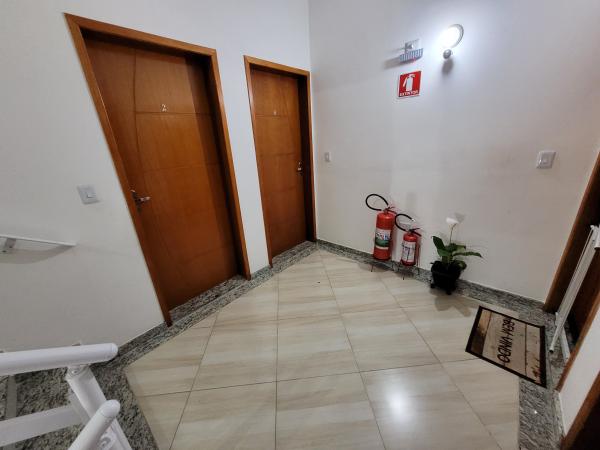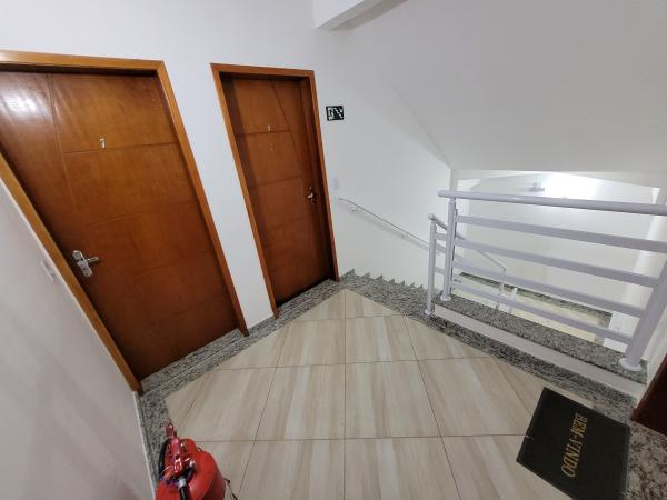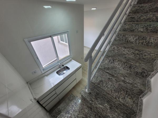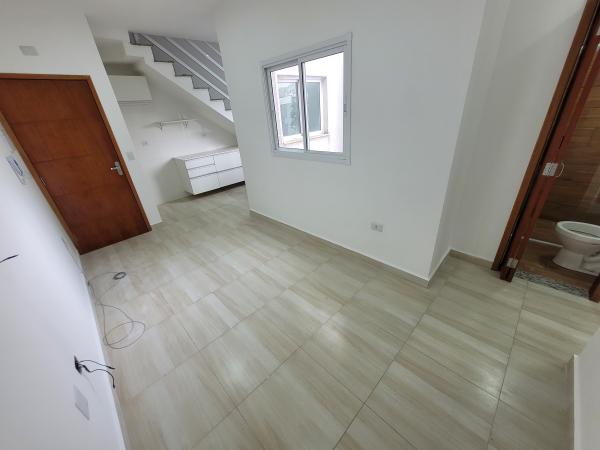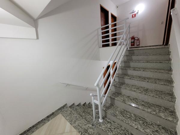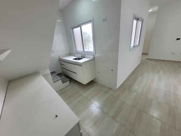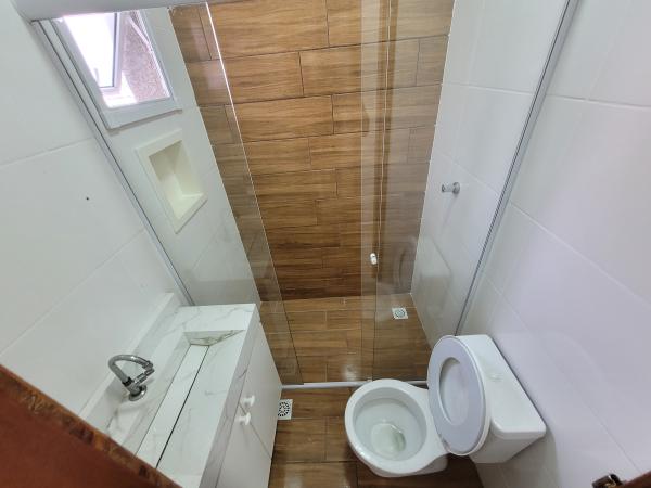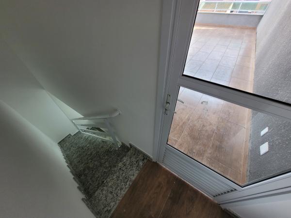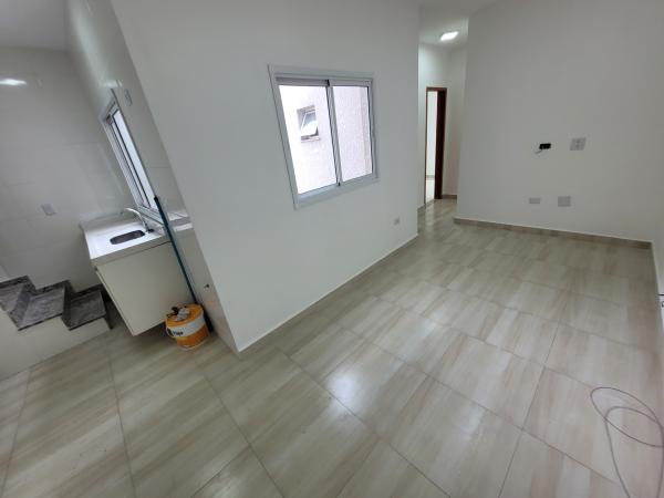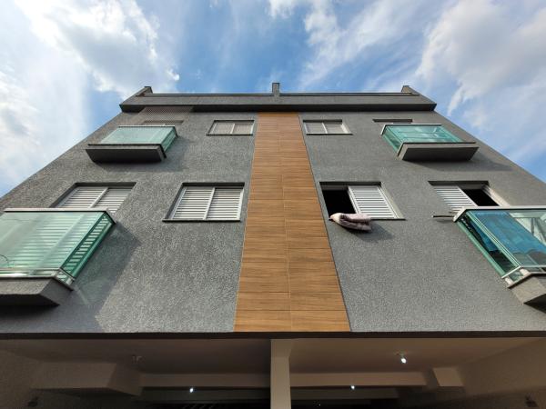 Apartamento Cobertura Novo - 42,6m² + 42,6m² da cobertura - 2 dormitórios, sala, cozinha com gabinetes, WC com Box. Cobertura com acesso interno por escada privativa, 50% coberta, com lavanaderia, lavabo e área de sol, vista livre. 1 vaga coberta demarcada, portão automático. 2º andar - frente. Ótimo acabamento: teto rebaixado em gesso, escada em granito, pia em porcelanato, esquadrias em alumínio. Condomínio: R$ 100,00 mensal. IPTU 2025: R$ 450,00 anual (estimado). Aceita Financiamento. REF. 1432.