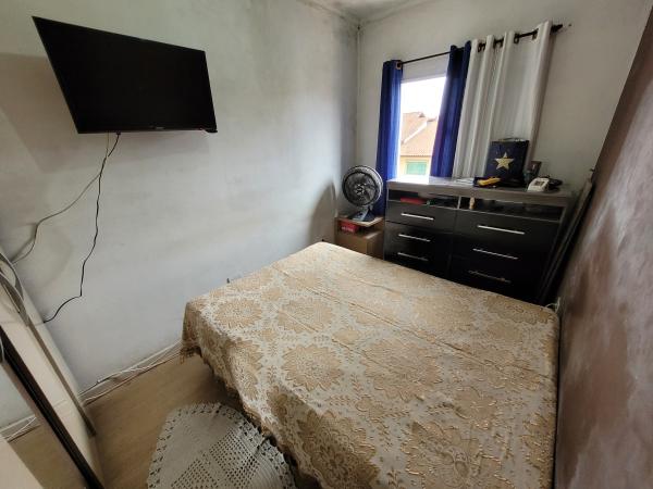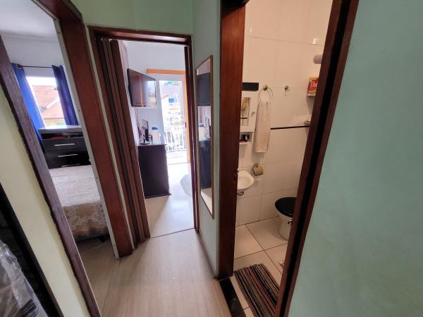 Apartamento com 38m² - 2 dormitórios, sendo 1 com sacada, sala/cozinha, WC com Box, lavanderia coberta, 1 vaga coberta, portão automático. 2º andar - frente. Condomínio: R$ 120,00 mensal. IPTU: R$ 53,54 anual. Estuda permuta por casa térrea. Aceita Financiamento. REF. 1433.
