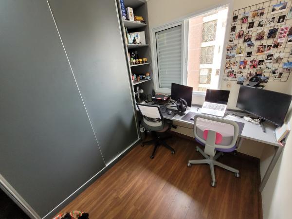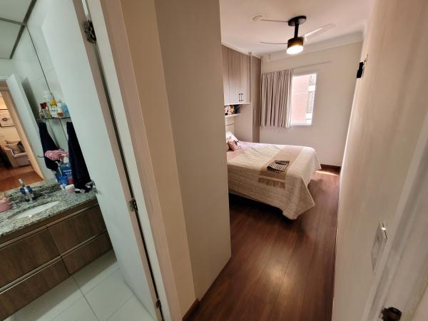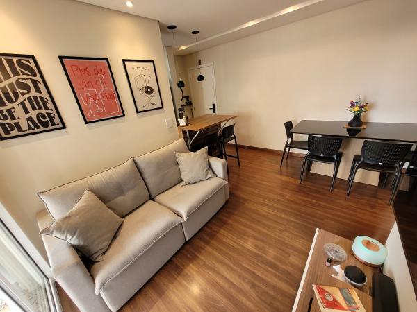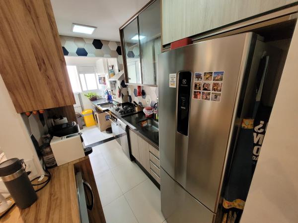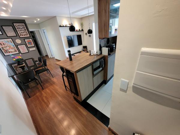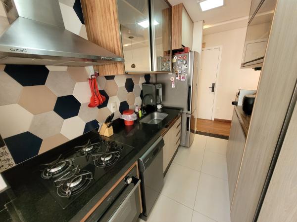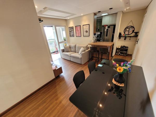 Apartamento porteira-fechada no 14º andar com 61,60m² - 2 dormitórios planejados, com camas de casal, sendo 1 suíte, sala de estar com sanca de gesso, rack, TV, soundbar e sofá, sala de jantar com mesa com 4 lugares, varanda gourmet envidraçada, com churrasqueira à carvão, exaustor e pia com gabinete planejado, cozinha planejada com mesa retrátil, cooktop, depurador, forno, geladeira, adega, lava-louças e microondas, 2 WC's com Box, chuveiros à gas e gabinetes planejados, lavanderia com máquina de lavar-roupas, 2 vagas cobertas demarcadas. Ótimo acabamento: pisos vinílicos na sala e dormitórios, pisos em porcelanato acetinado nas áreas frias; pia e soleiras da cozinha e lavanderia em granito preto são gabriel; fechadura eletrônica com digital, móveis planejados de alto padrão, área de escritório com mesa, prateleiras, 2 monitores e 2 cadeiras ergonômicas; iluminação automatizada, teto rebaixado em gesso na sala e varanda, portas e janelas com esquadrias em alumínio. Condomínio R$ 847,98 mensal com 3 torres, 18 andares e 4 apartamentos por andar, com área de lazer completa: 4 elevadores por torre (2 sociais e 2 de serviço), portaria 24h, estacionamento para visitantes, bicicletário, 3 piscinas (1 adulto semi-olímpica, 2 infantis), sauna, academia, quadra poliesportiva, brinquedoteca, 3 áreas gourmet com churrasqueira e forno, pista de dança, salão gourmet, salão de festas adulto com churrasqueira, salão de festas infantil com churrasqueira, salão de cabeleireiro, sala de reuniões, cinema, área pet e jardim. IPTU 2025: R$ 920,74 anual. Aceita Financiamento. REF. 1446.