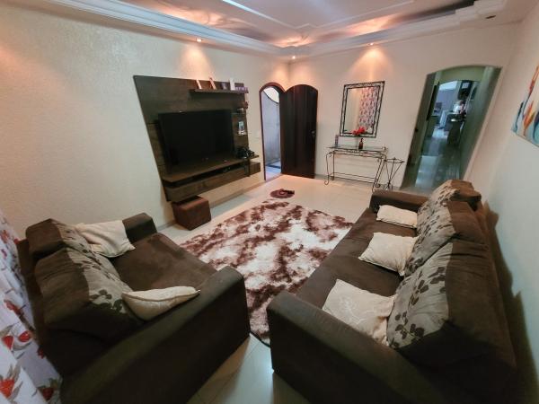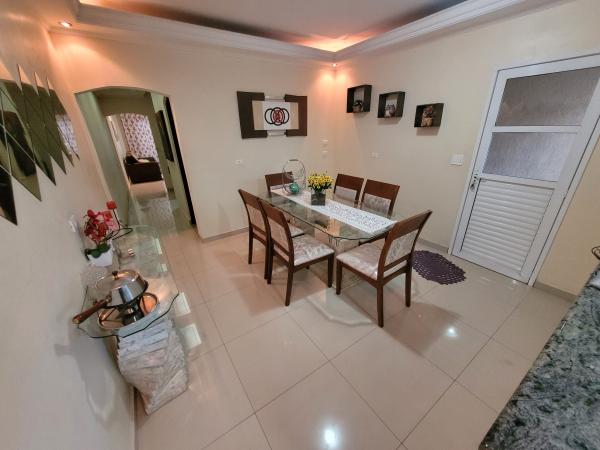 Sobrado com 130m² de terreno e 170m² de área construída - Casa 1) 2 dormitórios, sendo 2 suítes, ambas com closet e sacada, sala com sanca de gesso, sala de jantar com sanca de gesso, cozinha planejada, 3 WC's, sendo 2 com Box, lavanderia coberta, corredor externo. Casa 2) 1 dormitório, sala, cozinha, WC, lavanderia. 2 vagas cobertas, portão automático. IPTU 2024: R$ 1.243,68 anual. Aceita Financiamento. REF. 1300.