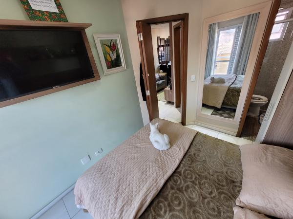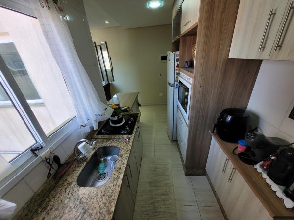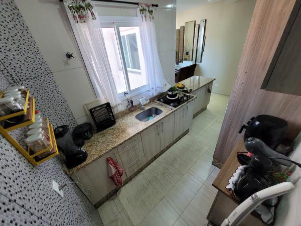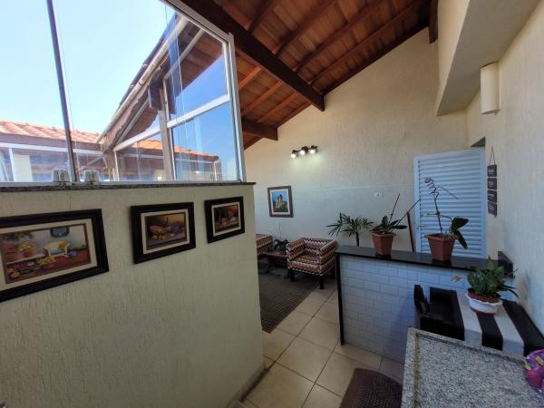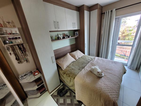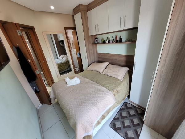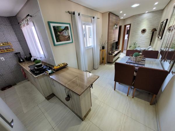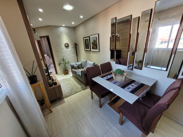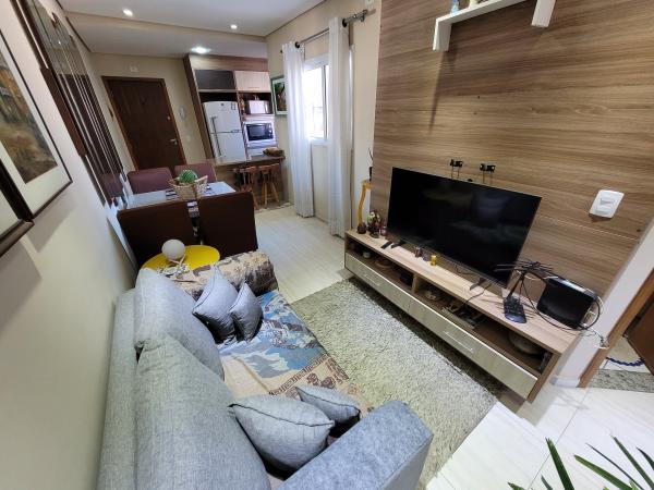 Apartamento Cobertura com 45,30m² + 45,30m² - 2 dormitórios planejados, sendo 1 suíte com sacada, sala de estar com painel planejado, cozinha planejada, 2 WC's com Box. Cobertura 90% coberta com acesso interno por escada privativa, área de churrasqueira, lavanderia, sala de estar, sala de TV, lavabo, lavanderia e sacada. 2º andar - frente (sol da tarde nos dormitórios), 1 vaga coberta, portão automático. Excelente acabamento: todos os cômodos planejados, pisos em porcelanato, teto rebaixado em gesso com iluminação embutida em LED, forro de madeira na cobertura, fechamentos laterais e frontal em vidro, portas e janelas com esquadrias em alumínio branco. Prédio com 04 apartamentos, sem elevador. IPTU 2025: R$ 396,58 anual. Aceita Financiamento. REF. 1397