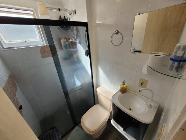 Apartamento no 2º andar com 42,75m² - 2 dormitórios planejados, sala com sanca de gesso, cozinha planejada, WC com Box, lavanderia, 1 vaga coberta demarcada. Pisos laminados na sala e dormitórios. Condomínio (incluso no aluguel) R$ 320,00 mensal incluso água, com portaria 24h, mini mercado 24h, bicicletário, portão automático, 2 salões de festas com churrasqueira, playground, quadra poliesportiva, sem elevador. IPTU 2025: isento. Garantias para locação: Fiador ou Seguro Fiança. REF. 1405.