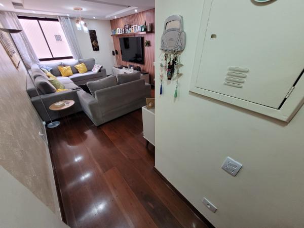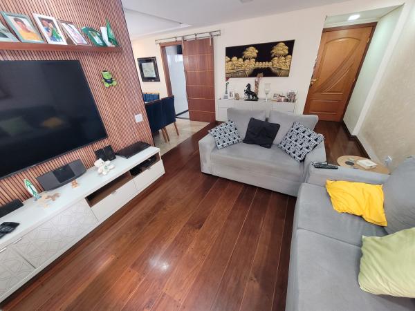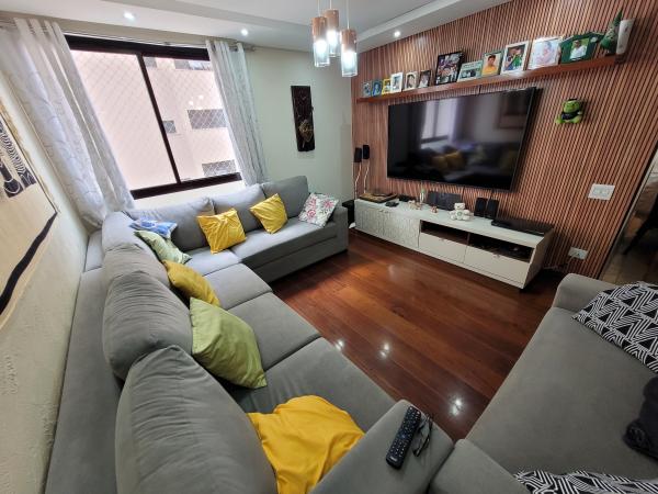 Apartamento com 106m² - 3 dormitórios, sendo 1 suíte, 2 planejados e com sacada, sala com 2 ambientes com painel de TV planejado e sanca de gesso com iluminação em LED, corredor interno, cozinha planejada, área de serviço planejada, 2 WC's com Box e gabinete, 1 vaga fixa coberta. Ótimo acabamento: pisos de madeira na sala, dormitórios e corredor; pisos em cerâmica nas áreas frias; móveis planejados. 9º andar, 2 apartamentos por andar, prédio com 18 andares. Condomínio R$ 1.080,00 mensal com água e gás incluso, portaria 24h, portão automático, 1 elevador social e 1 de serviço, salão de festas e playgorund. IPTU 2025: R$ 839,65 anual. Aceita Financiamento. REF. 1443.
